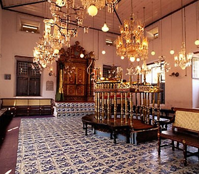 Synagogue first built in 1568 for Cochin's Jewish community, now housing antiques & other artifacts.